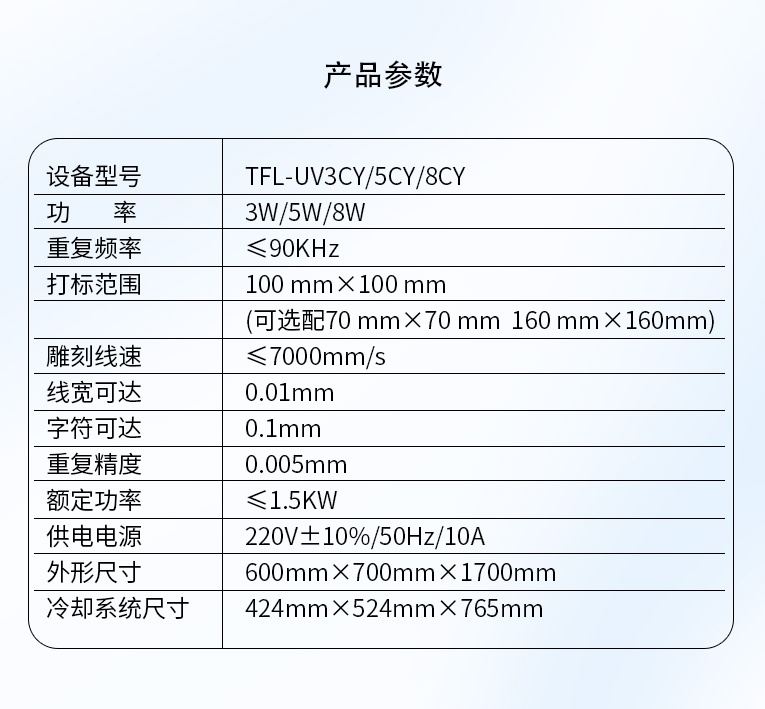 通發(fā)紫外激光打標(biāo)機技術(shù)參數(shù):