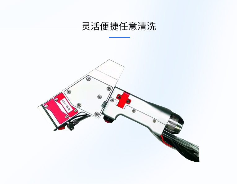 清洗機手持激光頭外觀簡潔、小巧輕便,可以長時間手持使用,按鍵與手柄一體化設計,簡單易用。內置掃描系統采用小型高速電機及驅動 ,主體為一體化加工成型,堅固防塵且穩定耐用。激光頭采用了創新的紅光輔助尋焦設計,可利用紅光指示輕松找到不同場 鏡下的對焦位置,解決了市場上現有產品對焦不準確以及調節方式單一的問題。